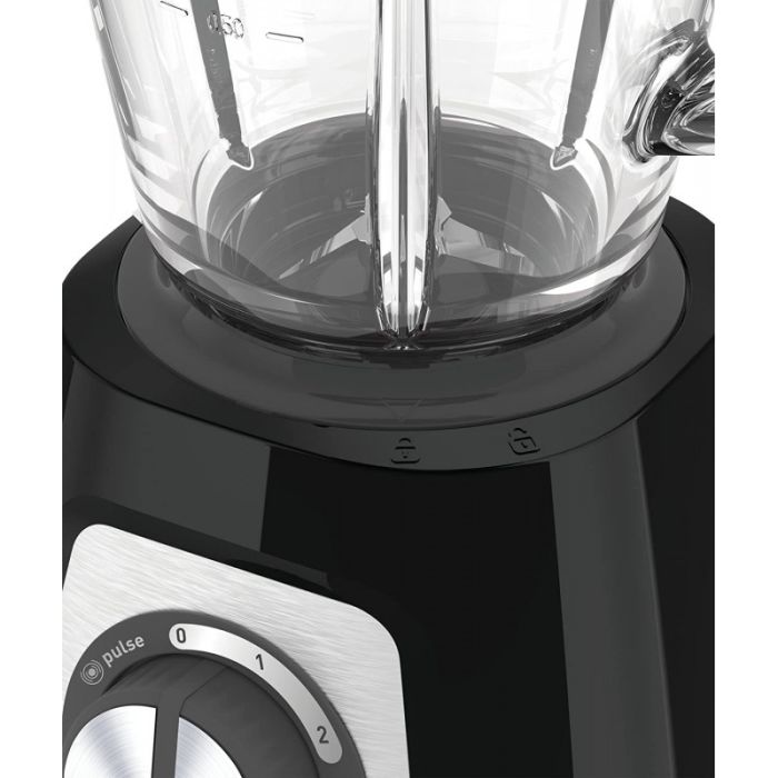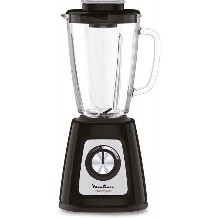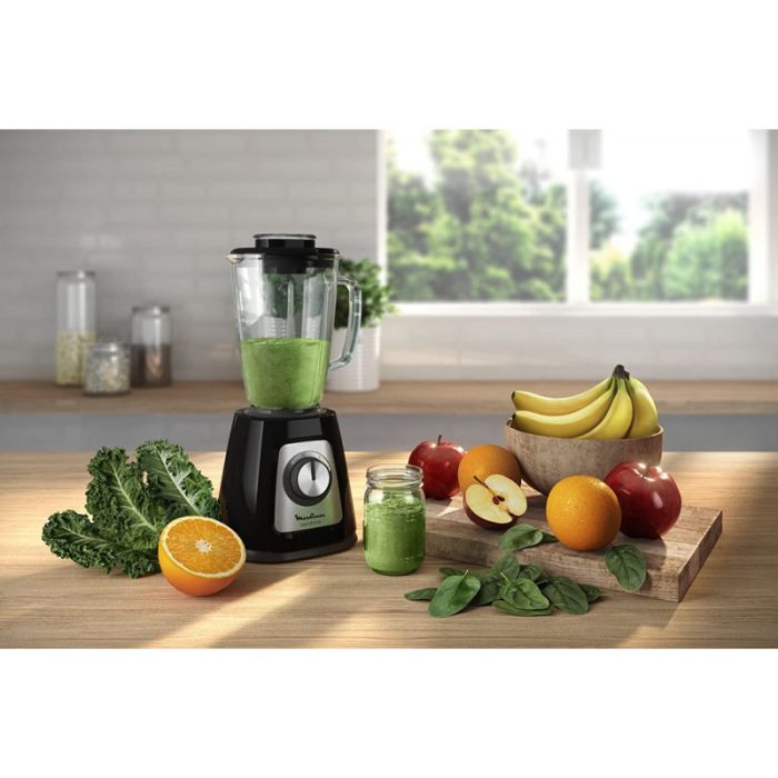 Blender Noir MOULINEX – Puissance: 800 Watts – Capacité du bol: 1.75 Litres – Nombre de vitesses: 2 vitesses + Pulse – Lames en acier inoxydable – Système de verrouillage: SmartLock – Bol en Verre résistant aux chocs thermiques – Fonction glace pilée – Pieds ventouses de stabilité – Range cordon – Compatible lave-vaisselle – Couleur: Noir – Garantie: 1 an