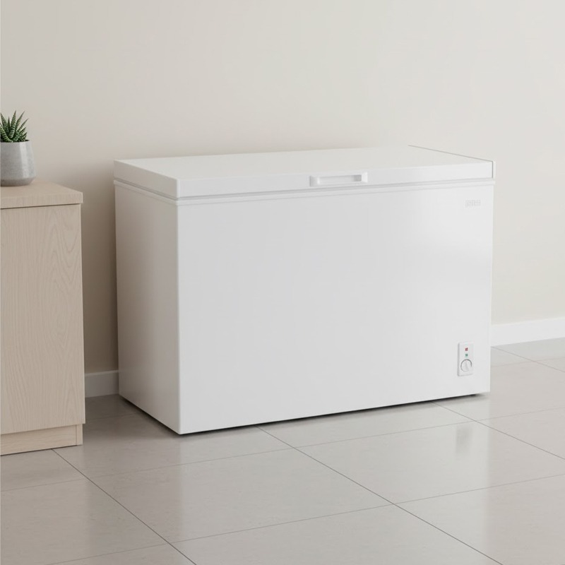 Avec ses dimensions compactes (85 × 112 × 56 cm), ce congélateur horizontal peut facilement être installé dans une cuisine, un garage ou un local de stockage. Son design blanc classique s’adapte à tous les environnements.