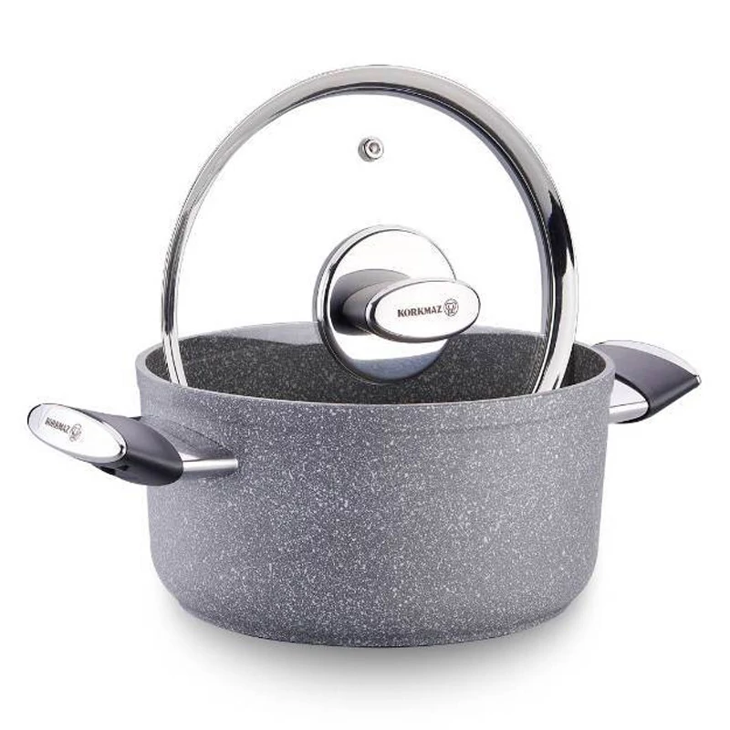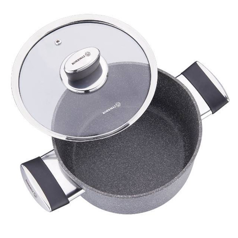 Tout d’abord, ce faitout Korkmaz présente un aspect volcanique élégant, caractéristique des ustensiles de cuisine en granite. En effet, cette technologie améliore la résistance aux rayures et prolonge la durée de vie du produit. De plus, le revêtement PTFE antiadhésif permet de cuisiner avec très peu d’huile.