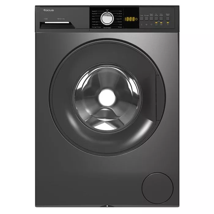 Lave Linge Frontal FOCUS F1208G – Capacité: 8 kg – Vitesse d’Essorage: 1200 tours/min – Classe Énergétique: A+++ – 15 programmes – Départ différé de 1 à 23 heures – Tambour en inox – Dimensions: H x L x P: 84.5 x 59.7 x 52.7 cm – Couleur: Gris – Garantie: 2 ans