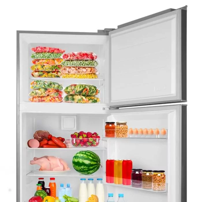 Doté de trois étagères en verre trempé, ce modèle permet une organisation optimale des produits. Le bac à légumes compact est parfait pour conserver vos fruits et légumes frais plus longtemps. Les deux poignées des portes ajoutent une touche pratique pour un accès facile, tandis que la couleur inox lui donne un look moderne et élégant.