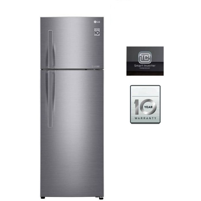 Réfrigérateur LG – 2 Portes – Système de refroidissement: NoFrost – Volume Net du Réfrigérateu: 307 Litres – Volume Brut du Réfrigérateur: 329 Litres – Classe Énergétique: A+++ – Éclairage LED – Compresseur Inverter – Smart Diagnostic™ – DoorCooling™ – Flux d’air multiple – Moist Balance Crisper™ – Plateau coulissant – Bac à légumes de grande taille – 32% d’économie d’énergie – Dimensions: H x L x P: 170 x 60 x 68.5 cm – Couleur: Inox – Garantie: 3 ans (10 ans sur moteur)